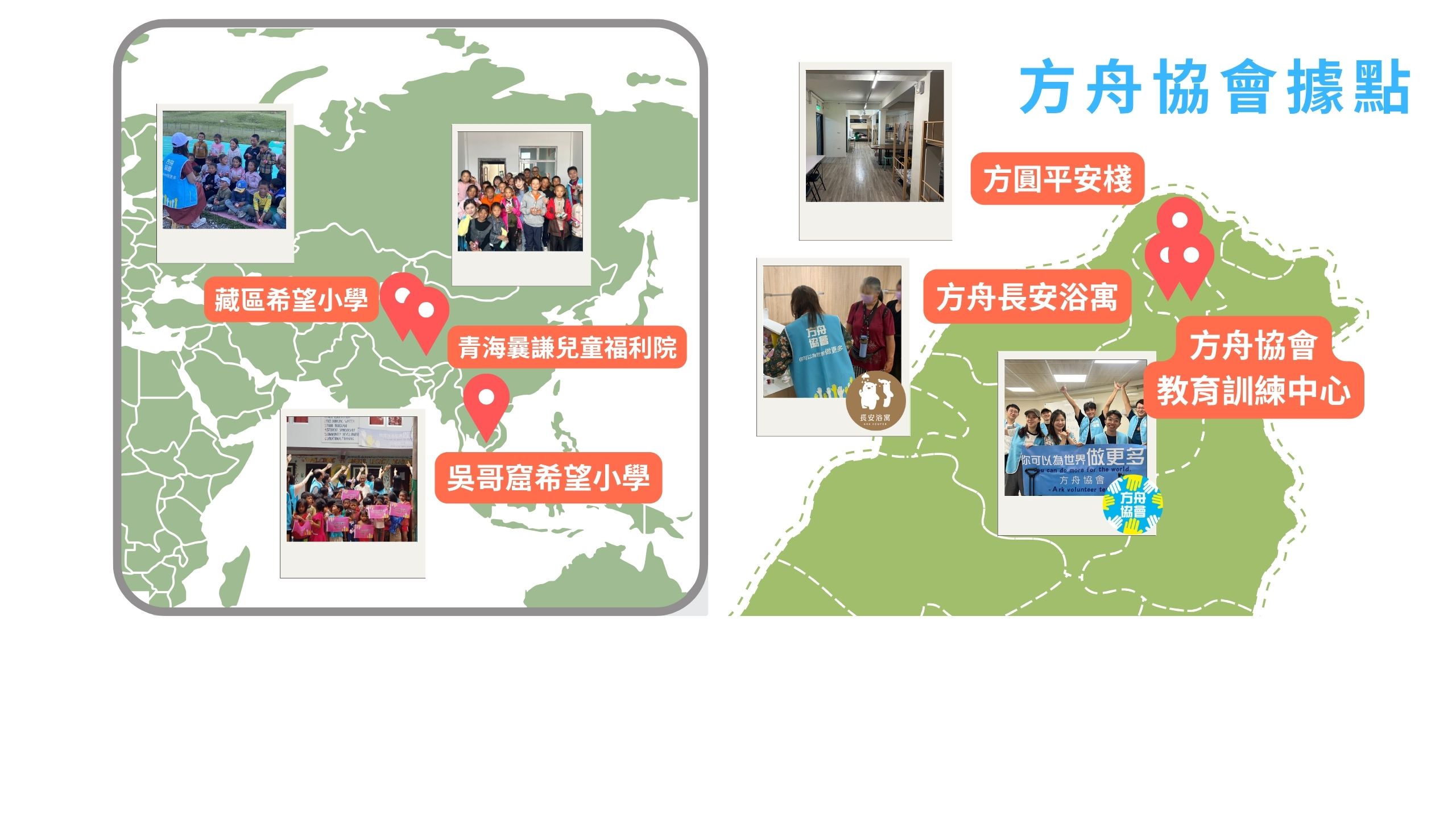 協會的公益活動項目:青年生命教育、國際志工,西藏小學以及社區獨居老人、