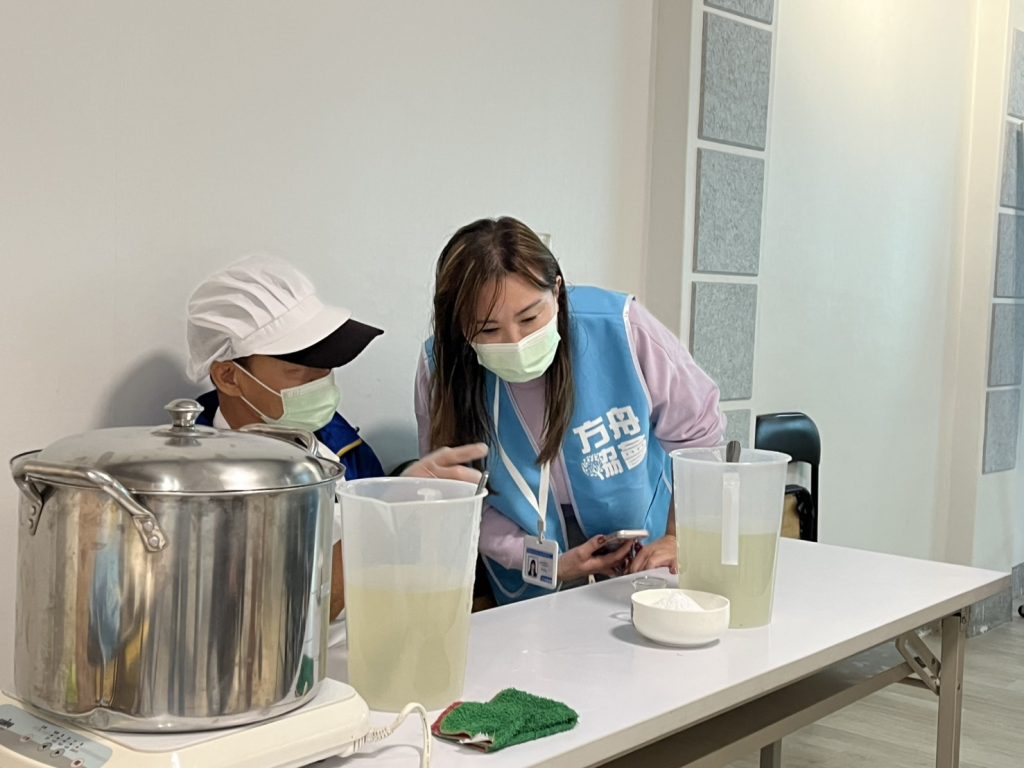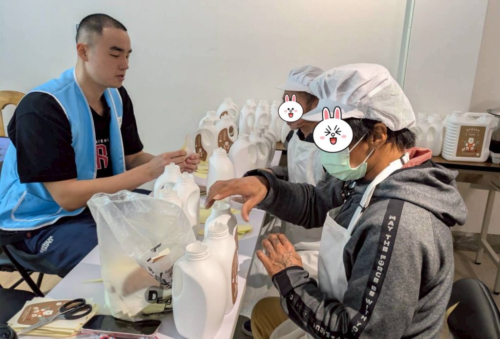 在這次活動中,我們的創辦人 Winny 也一同加入,與大家一起完成洗衣精。她與無家者自在地聊起近況,關心生活狀況與身體健康,現場少了生疏的距離感,多了熟悉朋友般的互動氛圍。對我們而言,這樣的陪伴不是一次性的活動,而是長期關係的延續。