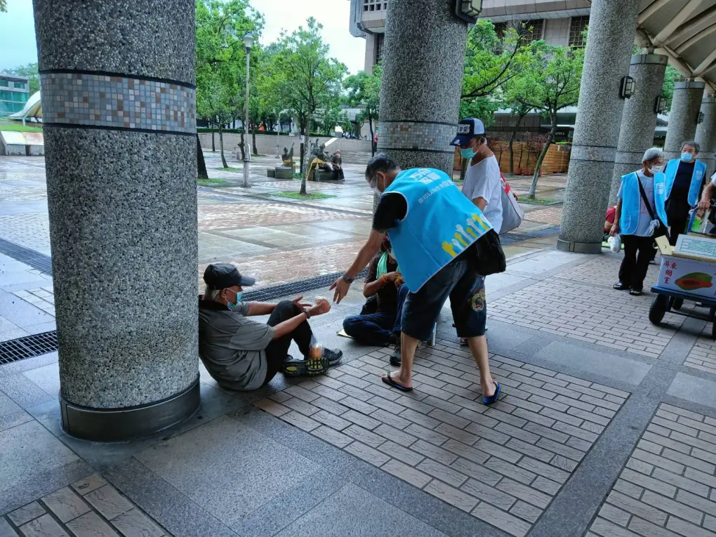 • 防疫期間,街友送餐持續進行中,戴上口罩做好防護,愛不間斷。
